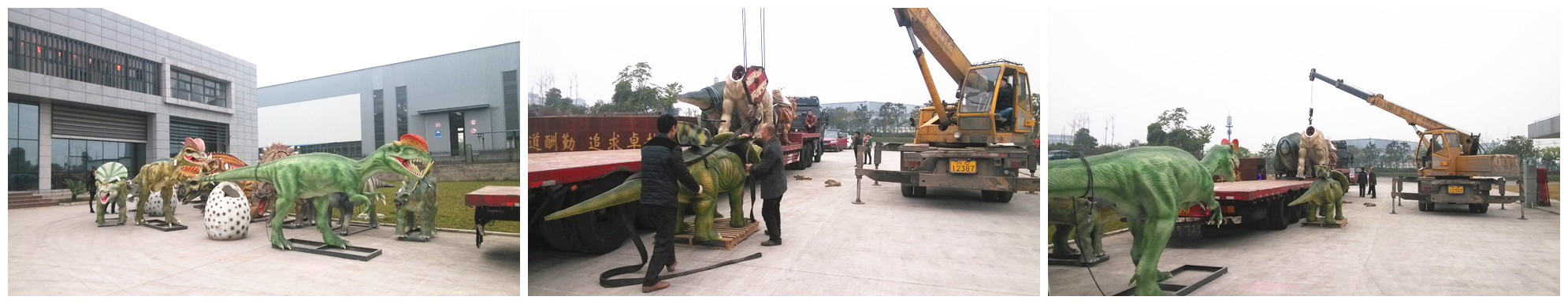 公司工程制作中心和藝思特恐龍彩燈科技有限公司,于元月18日-25日順利完成發(fā)往韓國、山東、成都的大型仿真恐龍、彩燈裝箱(車)工作。此次發(fā)往展出地 的機(jī)械仿真恐龍,共計9口箱(車),由于數(shù)量多,形體不規(guī)則,尺寸超長(最大體量的恐龍身長達(dá)16.2米、身高達(dá)9 米),為入箱作業(yè)帶來難度。加之氣溫驟降,天空飄起了密集的雪花,紛擾了現(xiàn)場作業(yè)視線,公司員工不畏嚴(yán)寒,配合物流公司箱(車)管員穿梭在場地上進(jìn)行搬運(yùn)和裝載,終于在元月25日下午圓滿完成發(fā)運(yùn)貨物的裝箱(車)工作。