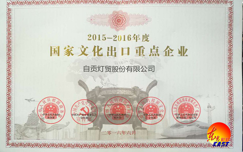 會(huì)上,省商務(wù)廳副廳長(zhǎng)于濱向我公司董事長(zhǎng)劉婭頒發(fā)《2015-2016年度國(guó)家文化出口重點(diǎn)企業(yè)》證書,這是我司自2007以來(lái),第五次榮獲此殊榮,也是全國(guó)彩燈行業(yè)連續(xù)五屆十年獲此殊榮的企業(yè)。