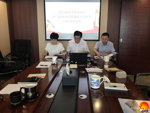授牌儀式后,舉行了自貢燈貿集團股份有限公司與四川省經濟文化協會“2017秘魯中國熊貓彩燈文化節(jié)”合作簽字儀式。
