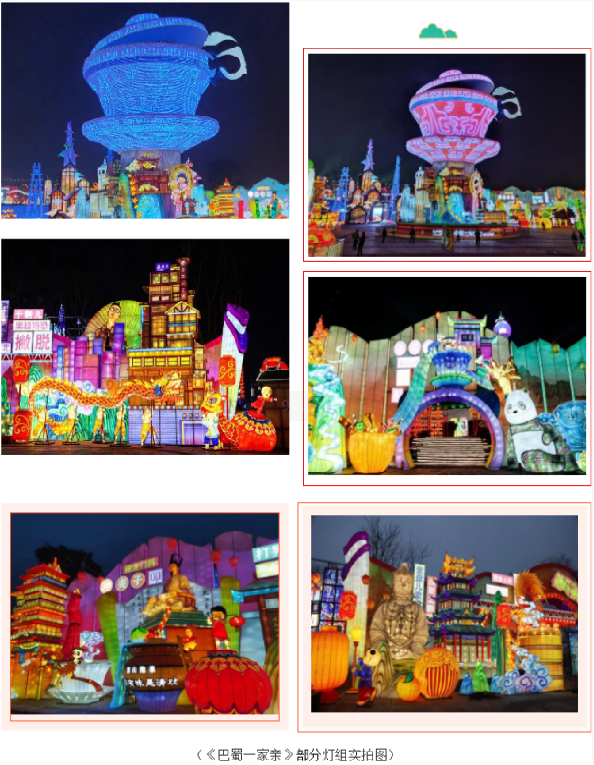 今年,自貢·中華彩燈大世界以“觀自貢燈 過中國年”為主題,550畝展區(qū)、十五大主題、上百組彩燈,給游客們帶來一場自貢彩燈文創(chuàng)新紀元的視覺盛宴。有800多年歷史的自貢燈會,開啟全新云時代,將自貢燈會打造成展現(xiàn)時代風貌的大舞臺,讓您足不出戶也能領略“天下第一燈”的魅力!由燈貿集團創(chuàng)意、設計團隊等數(shù)百名彩燈匠人歷時兩個多月精心打造的《巴蜀一家親》、《自貢記憶》、《五糧液》三個大型燈組?!栋褪褚患矣H》薈萃川渝各城風貌之靈光,主體以獨具特色的川渝茶文化代表——蓋碗茶為載體,現(xiàn)代透光材質制作憨態(tài)可掬的熊貓,下方高鐵環(huán)繞而行,輔以巴蜀特色元素,將自貢傳統(tǒng)彩燈制作工藝與新技術相結合,為游客帶來可看、可聽、可聞的沉浸式的觀燈體驗。