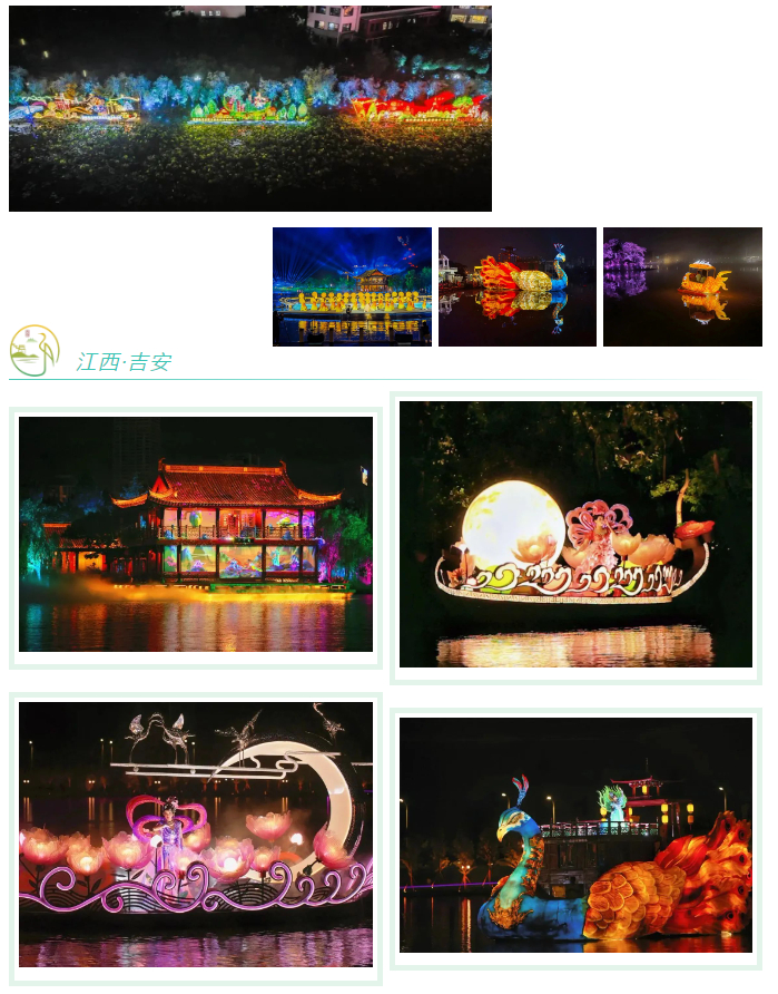 6月13日至15日,2022年江西省旅游產(chǎn)業(yè)發(fā)展大會(huì)在吉安市舉辦。自貢燈貿(mào)集團(tuán)匠心呈現(xiàn)的““后河 · 夢(mèng)回廬陵””彩燈藝術(shù)盛宴,在廬陵山水間華美鋪陳,流光溢彩。彩燈用“光”解構(gòu)時(shí)間,用“影”重塑空間,演繹廬陵厚重的文化、進(jìn)取的精神,開放的胸懷,展現(xiàn)現(xiàn)代吉安奮力建設(shè)革命老區(qū)高質(zhì)量發(fā)展先行區(qū)、全省共富共享美好生活實(shí)踐區(qū)、全國紅色基因傳承示范區(qū)的豐碩成果。