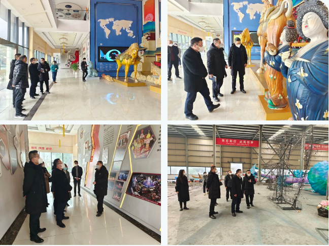 立法調(diào)研組一行人在集團(tuán)執(zhí)行總裁陶建軍陪同下首先參觀了集團(tuán)公司大廳展陳精品燈組“唐風(fēng)華韻”。隨后來到東方彩燈出口基地生產(chǎn)車間,第29屆自貢國際恐龍燈會燈貿(mào)集團(tuán)承制燈組的制作現(xiàn)場,詳細(xì)了解了本屆燈會燈組制作的相關(guān)情況。